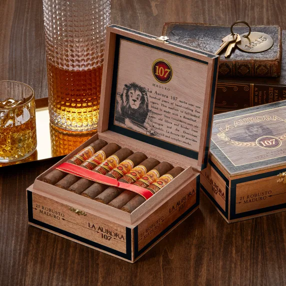 Released in 2010, our 107 Tobaccos of the World collection features a selection of our finest tobacco from around the globe, paying homage to 107 years of artisanal hand craftsmanship. The dark, oily Connecticut broadleaf wrapper of our 107 USA cigar is complemented perfectly with Dominican Cibao Valley binder instead of the Ecuadorian binder classically used in this collection. This unique combination creates a rich, subtly sweet smoke with notes of roasted coffee and woods.